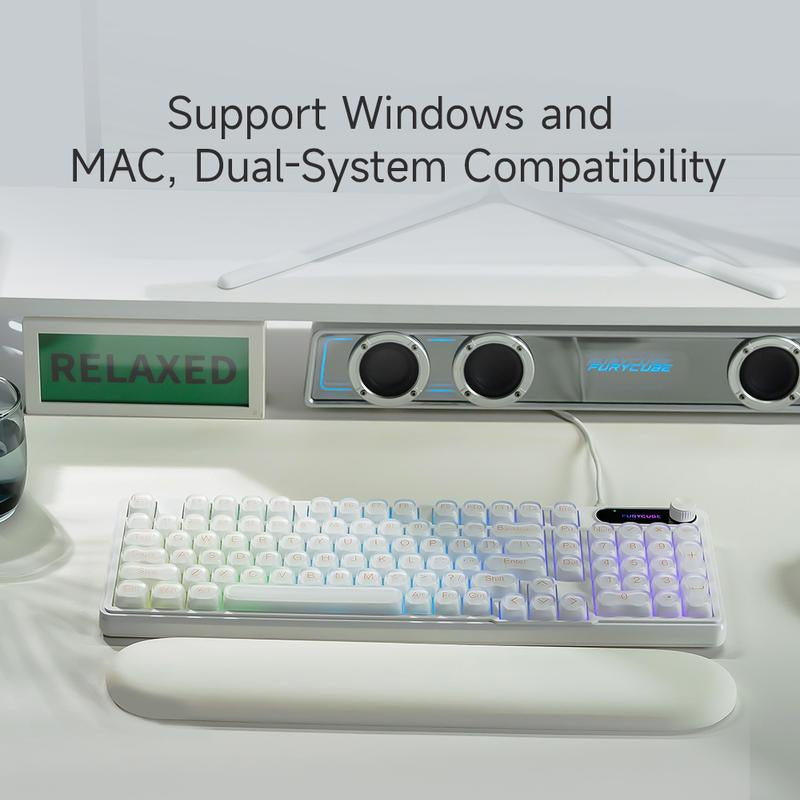 FURYCUBE IP98 Foundation Keyboard 98Keys Wired with Number Pad Silent Media Knob Custom Mechanical Feel RGB Backlit Ergonomic for PC MAC PS4 Xbox ONE