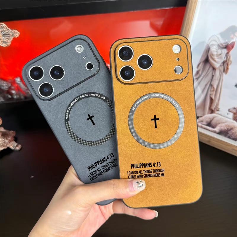 Philippians 4:13 Leather Magsafe Phone Case for Iphone 11-17 Pro Max| High-End Magnetic Charging| Anti-Drop & Anti-Slip Cover
